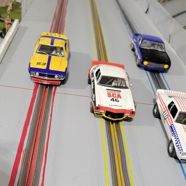 It was a hectic day of racing with 4 Very fast competitors in action. At the end of the day when the dust settles Lez came out on top taking 3 first place podiums and the fastest lap in all 4 classes. Ken struggled with pieces of scenery stuck in his car in the Trans AM class and lost body screws in the modern slot it class. However when push came to shove he did finish in 1st in the open GT class. Dariusz was very fast throughout setting a new track record in the Red lane in the open class. JOHN fought all the way through out all classes . The high light of his day probably was the fact he could ride his motorcycle to the race in February. … More Race #14 Predator Speedway