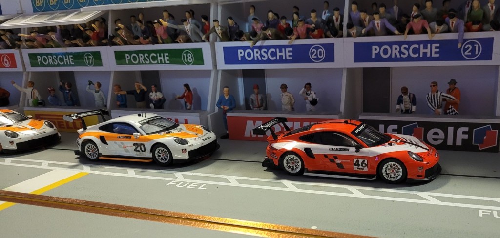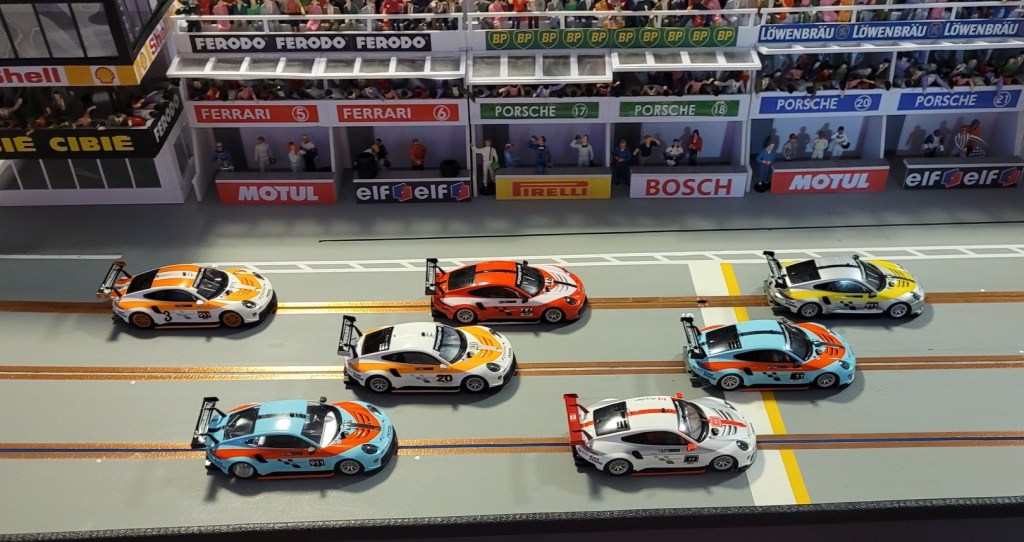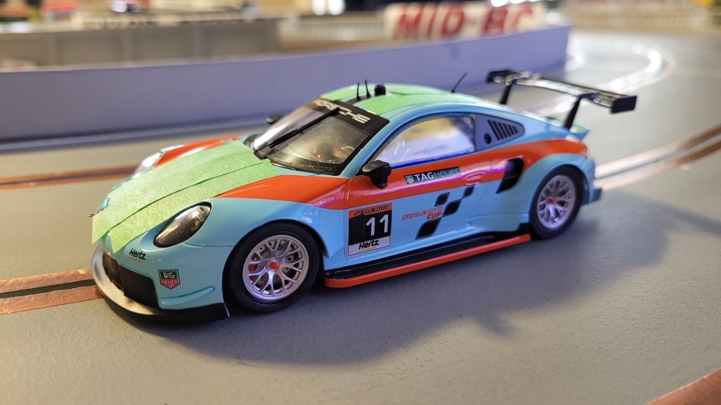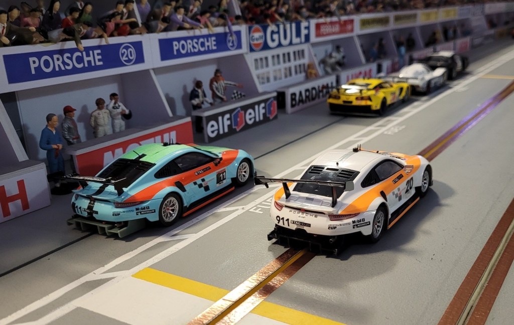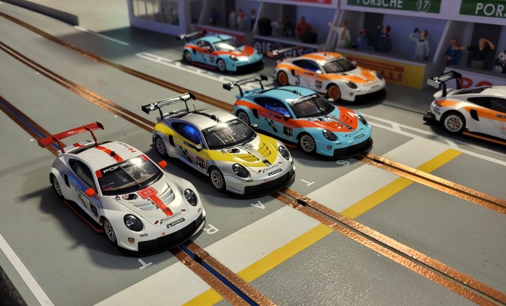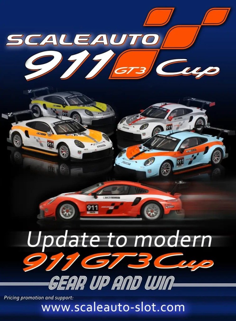 The Kelowna Slot Car Club was one of 300 clubs and one of only 2 in North America (both in Western Canada) who were selected by Scaleauto to participate in their Gear Up & Win race program. Being involved in this program offered up discounted pricing on their 911 GT3 Cup cars plus free spares including lexan interiors & windows as well as a large selection of additional sets of rear AS25 tires to fit the 911. In exchange we agree to host at least 4 races and then promote the events when possible as well as send them details of our events.