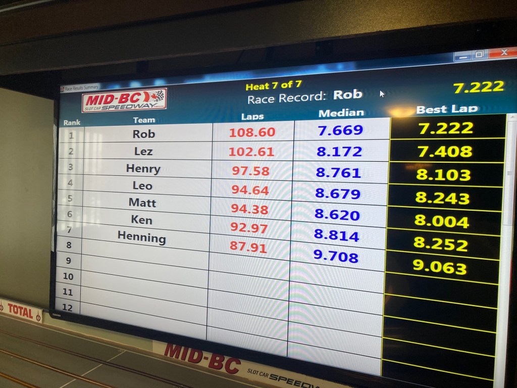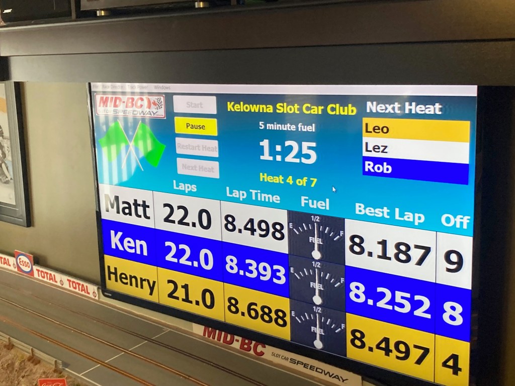 Here are the results from Race 2 of our Scaleauto Gear Up to Win event hosted by Rob in Kelowna at MID-BC Speedway. The Podium consisted of Rob, Lez and Henry at the end of the day. There sure was a lot of consistent laps every round!
