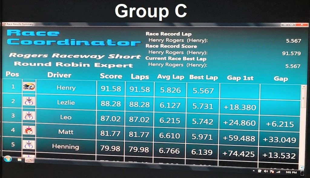 Our last class the Group C cars was a very fast group of cars. Once again Henry taking top spot despite a wire issue that pulled him out of one heat briefly.