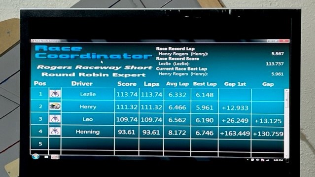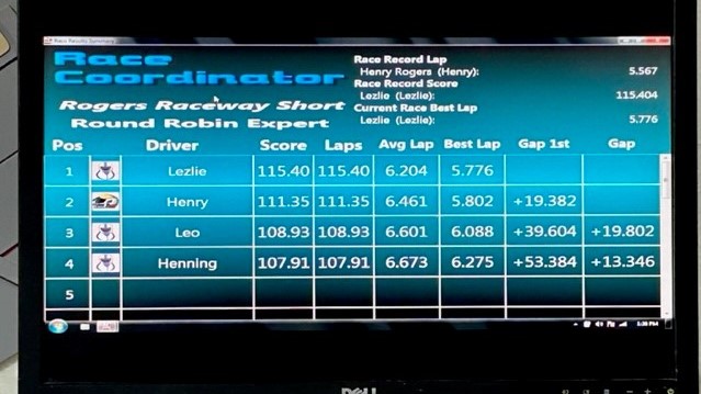 Race #14 held Sunday at Rogers Raceway was as close a you could get for first place. Henry and Lez battled all afternoon each finishing with two wins. The bonus fastest lap points were the deciding factor at the end of the day where Henry earned the overall win. Henry had the fastest lap time in three of the classes and Lez in one class. Congratulations Henry!