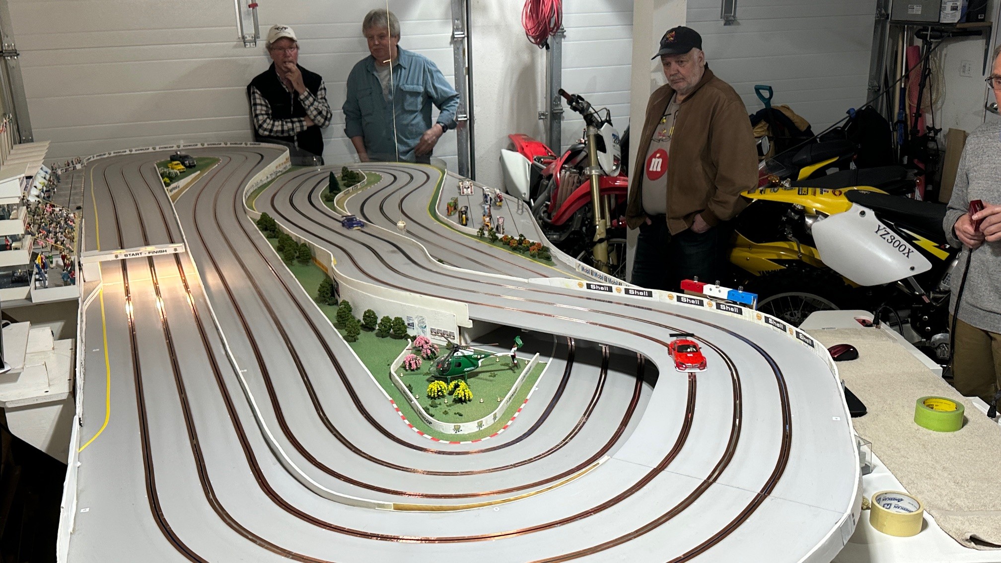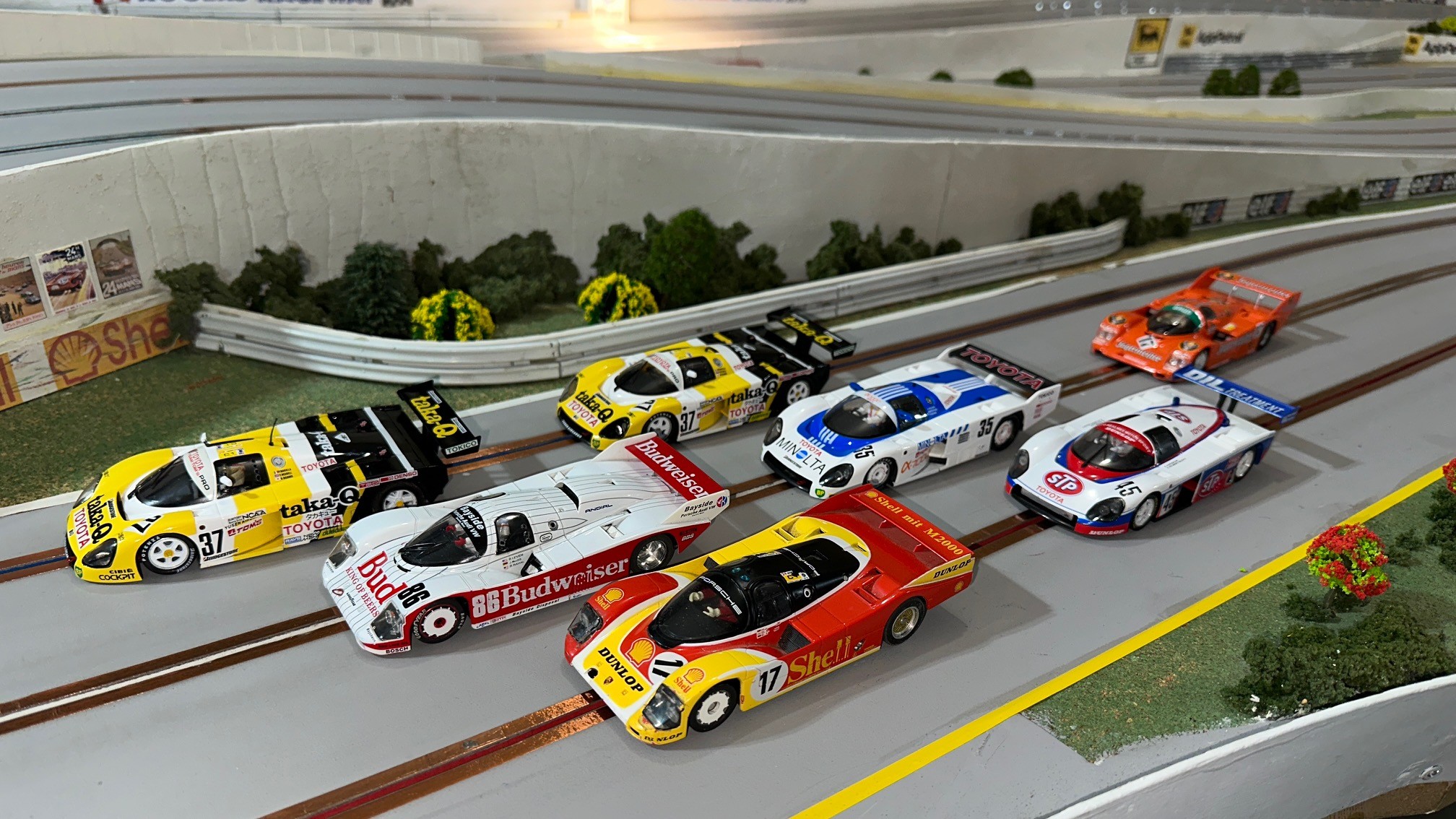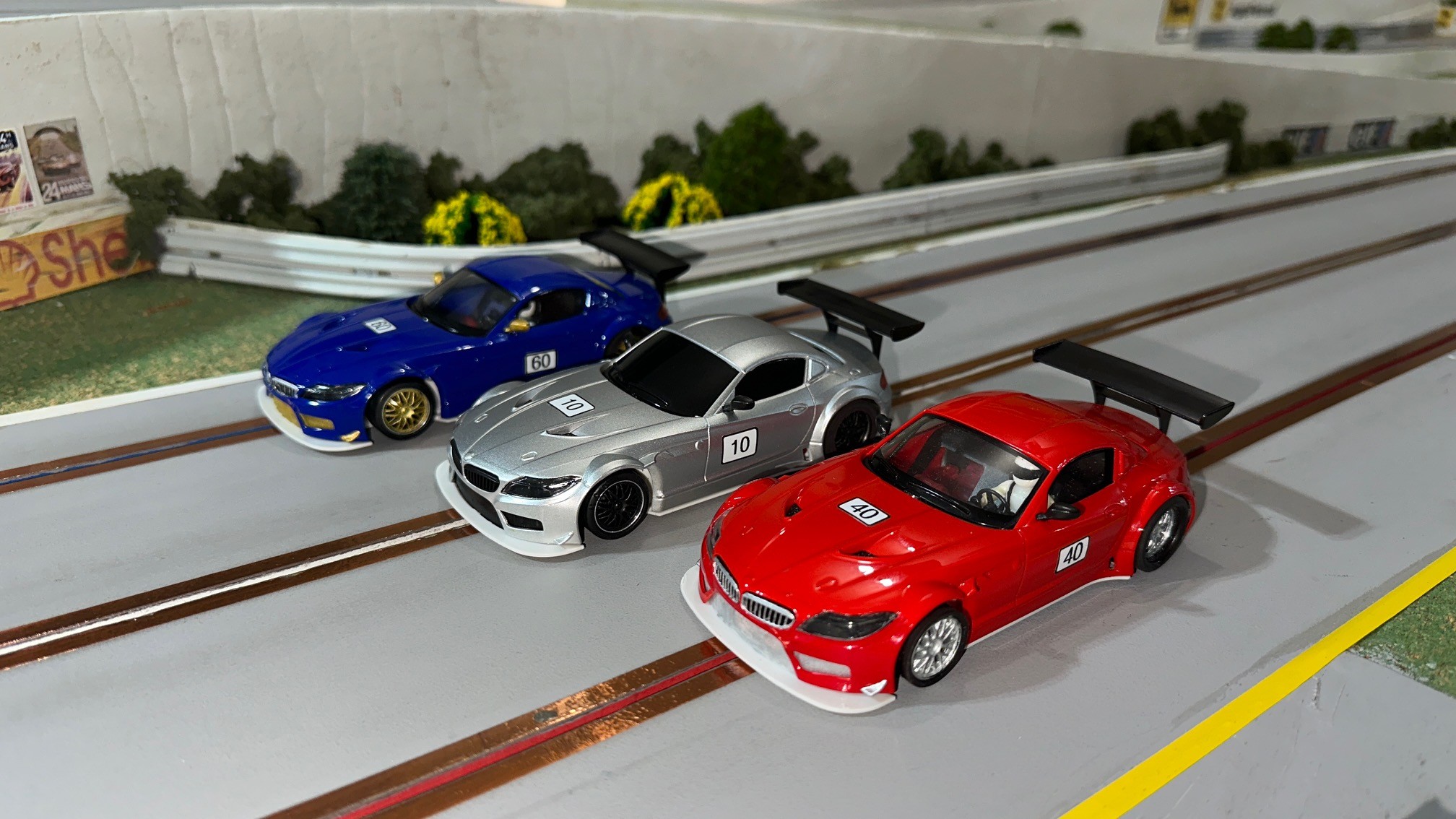 I think we had the closest finish on the podium ever this past race at Rogers Raceway. Four cars on the podium and three of the cars were within a point of each other. Congratulations to Henry for the win and followed by Lezlie, Leo and Rob on the podium. Ken finished a solid fifth and Henning in sixth managed to stay ahead of Don by one point. Newcomer Dale finished in eighth. Classes raced were Scalextric Nascar, NSR BMW, Fly Classics, and Slot.it Group C.