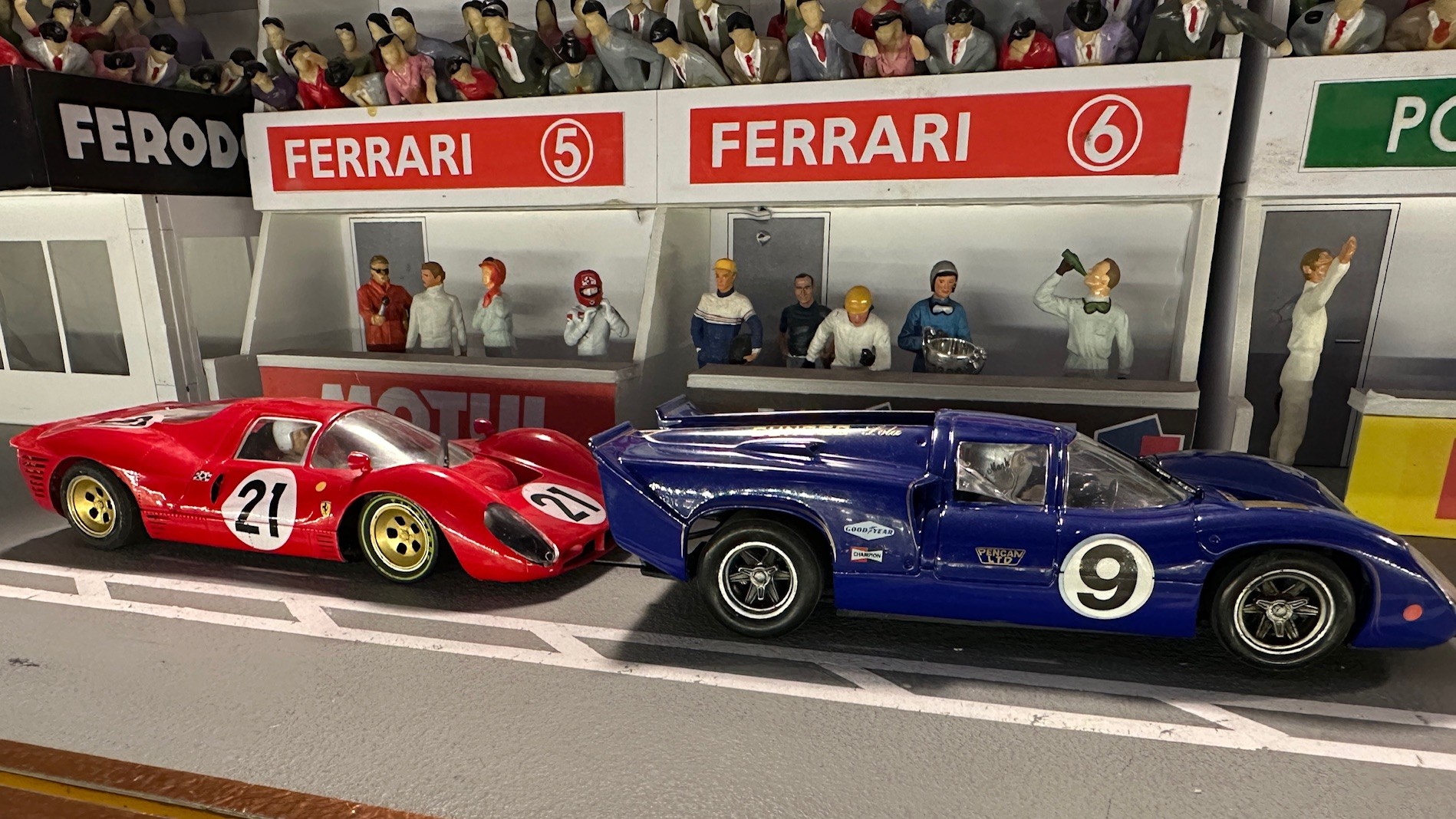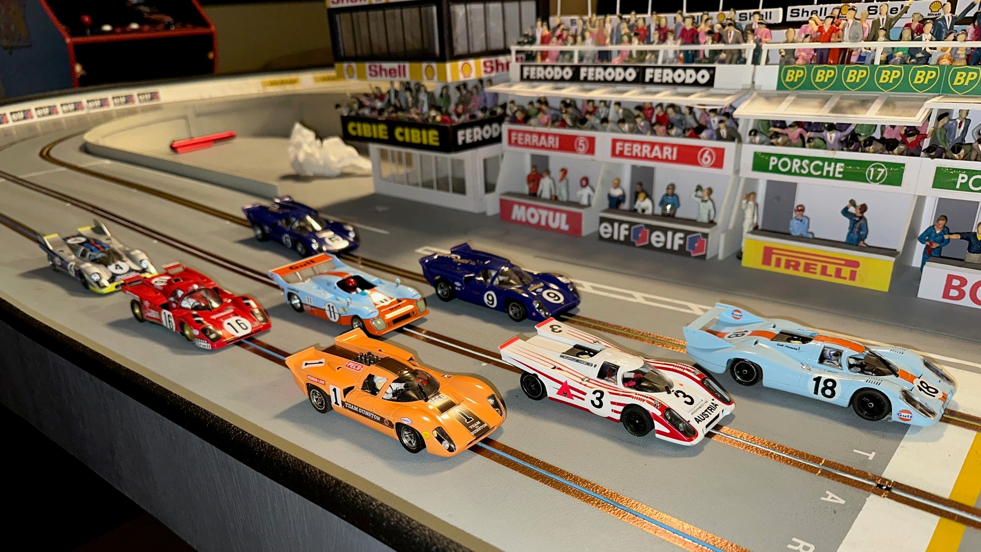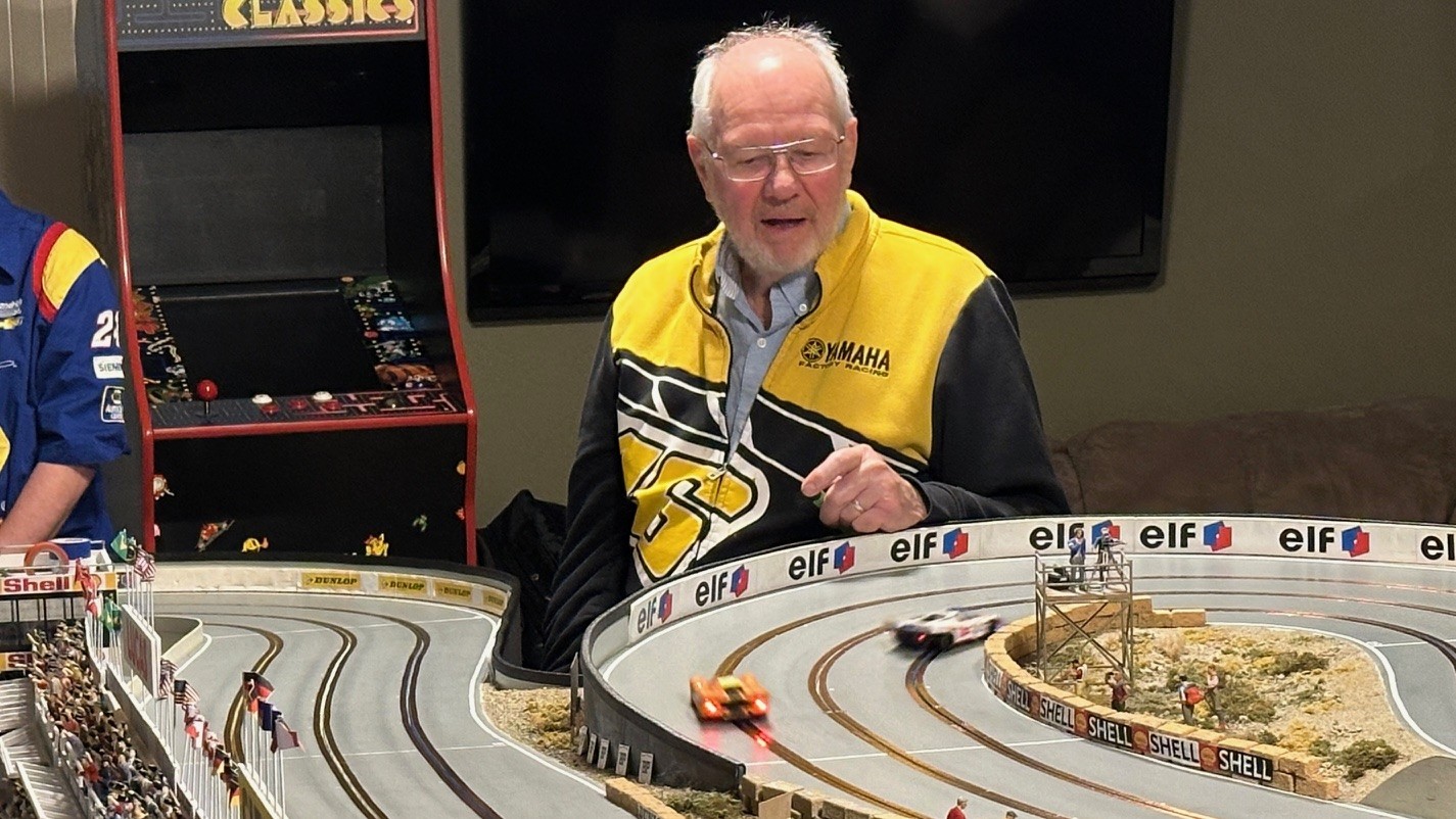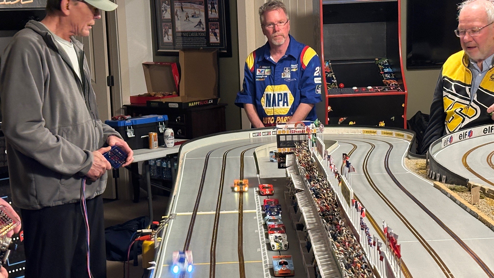 What a great time we all had running this year’s Le Mans! A lot of close racing throughout the day with many battles between racers. Overall combining the two era’s Rob finished first thanks to a really good run in the late era. Dariusz in second overall and Lez third overall battled all day and ended up only a lap and a half apart, it was just too close to call all the way! Team Mateo in fourth overall finished only two and a half laps ahead of fifth overall Henry. Don K in sixth only three laps in front of Ken in seventh. We did have a mechanical problem this year, John who was running very fast sitting in fourth after the early era had a guide wire break. The time to repair really cost him finishing in eight place. To note: The early era had the top three racers only a lap and a half apart while the late era had Lez and Dariusz finish seven segments apart!